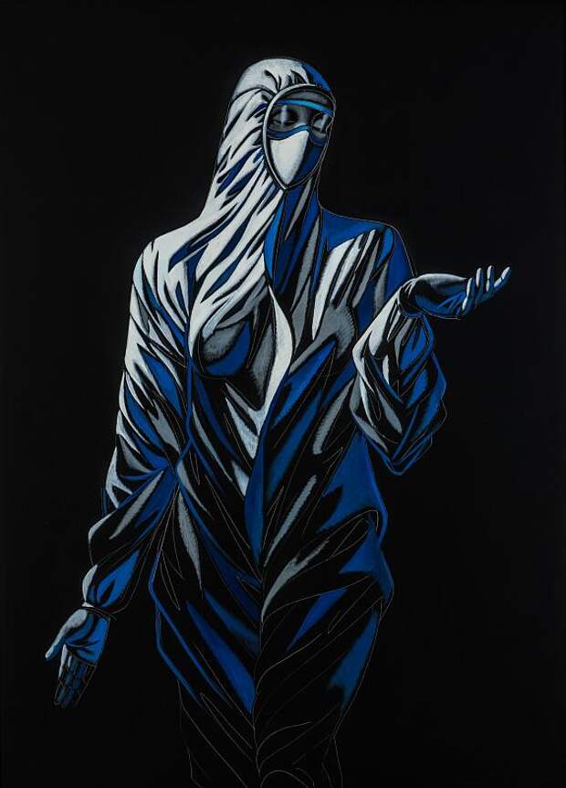 Айдан Салахова была одним из первых художников на постсоветском пространстве, кто смело начал работать с темами сексуальности, гендерной идентичности, положения женщины в современном мире. А свой свежий проект «Новые святые», представленный в Русском музее, она посвятила женщинам-врачам. Замысел серии родился у Салаховой в 2020 году, когда она лежала в «красной зоне» одного из московских госпиталей. Художница восхищалась работой врачей, их стойкостью и самоотверженностью, делала зарисовки и фотографии. Позднее она использовала их для серии живописных работ «Новые святые». Героини Салаховой предстают перед зрителем как часть воображаемого иконостаса. Они безлики, но их позы и жесты говорят сами за себя.