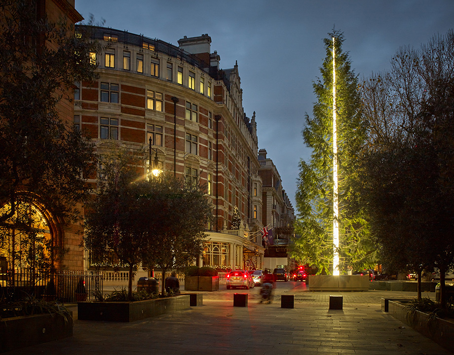 Ель, оформленная еще одним британским художником – Энтони Гормли, тоже получилась лаконичной. Как и Эмин, он решил использовать источник света. Им стал светящийся стержень, который пронизывал дерево (а точнее – красный кедр) высотой 17 метров от основания до макушки. «Я подумал, что вместо того, чтобы украшать ветви, лучше осветить ствол, превратив его в сияющий центр. Я хотел, чтобы дерево прославляло жизнь во всех ее проявлениях. Чтобы в самое темное время года оно давало ощущение жизненной силы», – рассказывал Гормли о своей концепции.