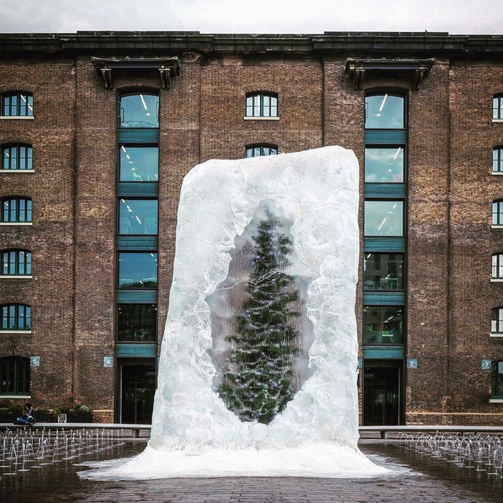 Британский скульптор Алекс Чиннек скручивает, связывает, переворачивает и даже застегивает на молнию свои объекты. Его инсталляции часто создают эффект оптических иллюзий, и рождественская ель для площади рядом с Кингс-Кросс не стала исключением. Скульптор заковал дерево в глыбу льда. Она, правда, была не настоящей и не рисковала растаять от повышения температуры. Чтобы создать эффект льда, художник использовал огромный блок смолы. А само дерево украсил 1200 светящимися лампочками. Рождественской инсталляции Чиннек дал название – Fighting fire with ice cream.